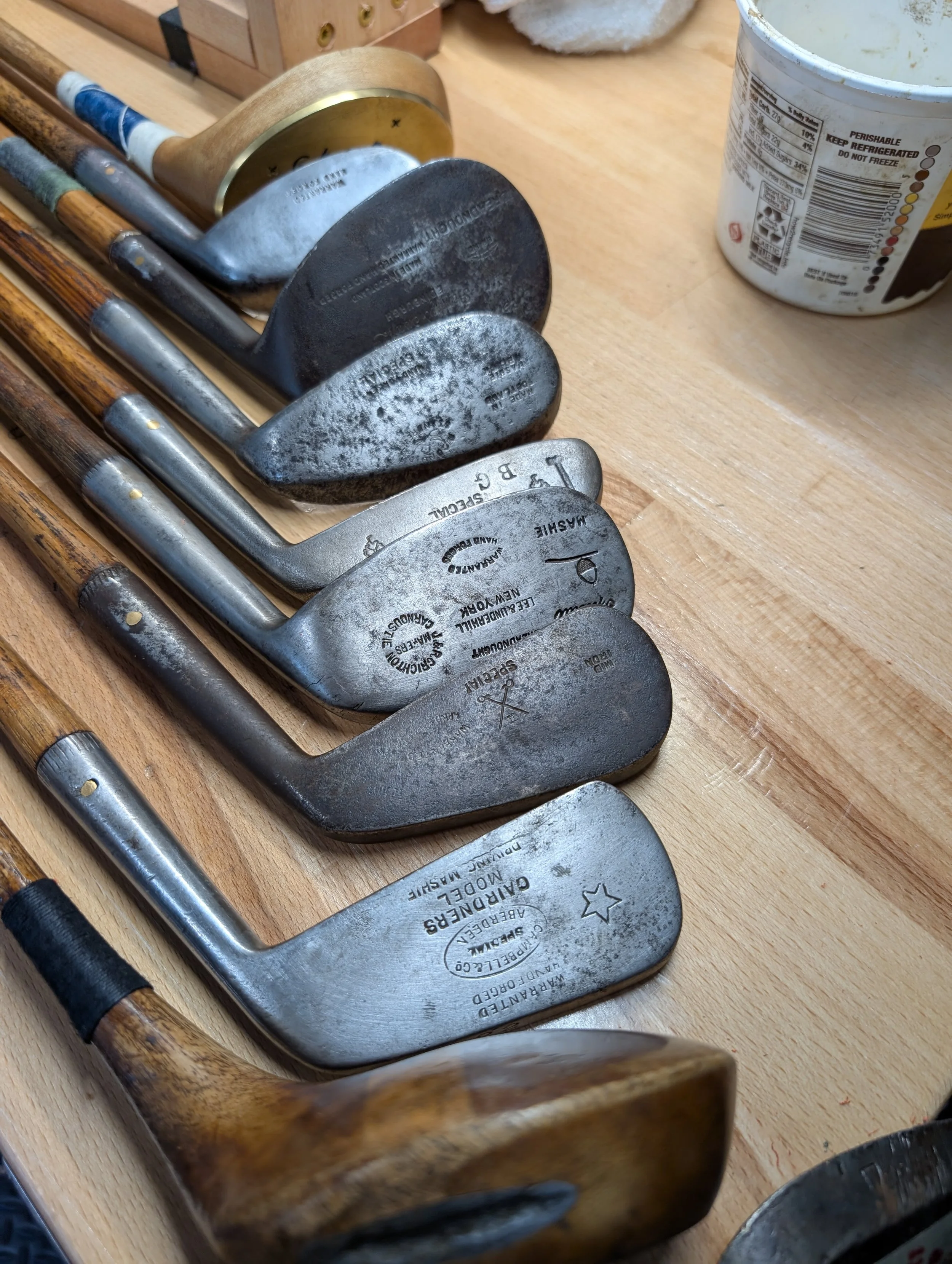 Millions of hickory clubs were made in the US and UK from 1900-1935. We search down the survivors at antique stores, thrift stores, flea markets, and online auctions. Often they are rusty, need new grips and are sometimes bent and broken.